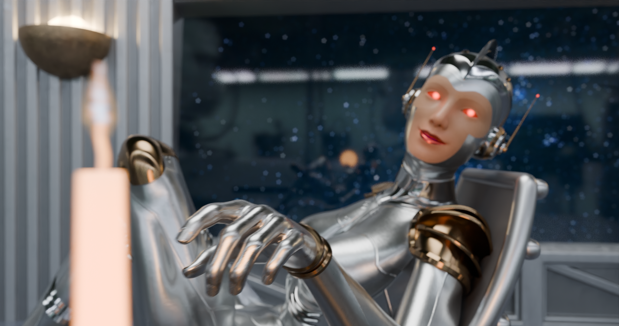 Anyway, I re-discovered this ad now as an adult, on a youtue channel dedicated to “vintage” CGI, and immediately reminded me of the feeling I had when I saw it for the first time. At first I felt the urge to create one render, just one image from the ad, trying to mimic that raw, shiny and imperfect look from the early CGI days, but then the project started to morph and grow into a full re-make of the whole ad. So I went back and started working on the robot woman.